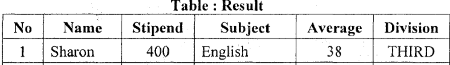 - Consider the table RESULT given below. Write commands in MySql for (i) to (ii)